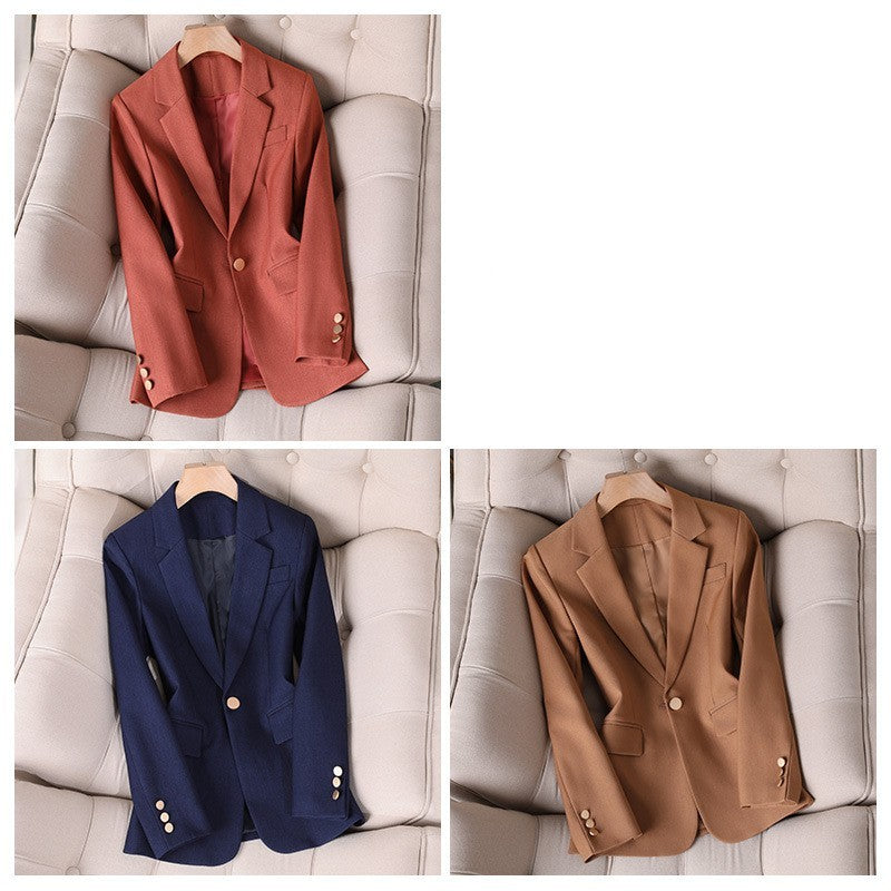 Color: single caramel suit jacket, single navy suit jacket, single khaki suit jacket
